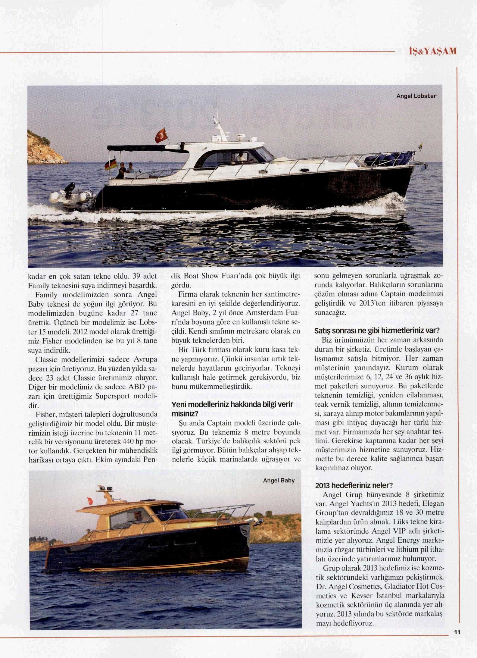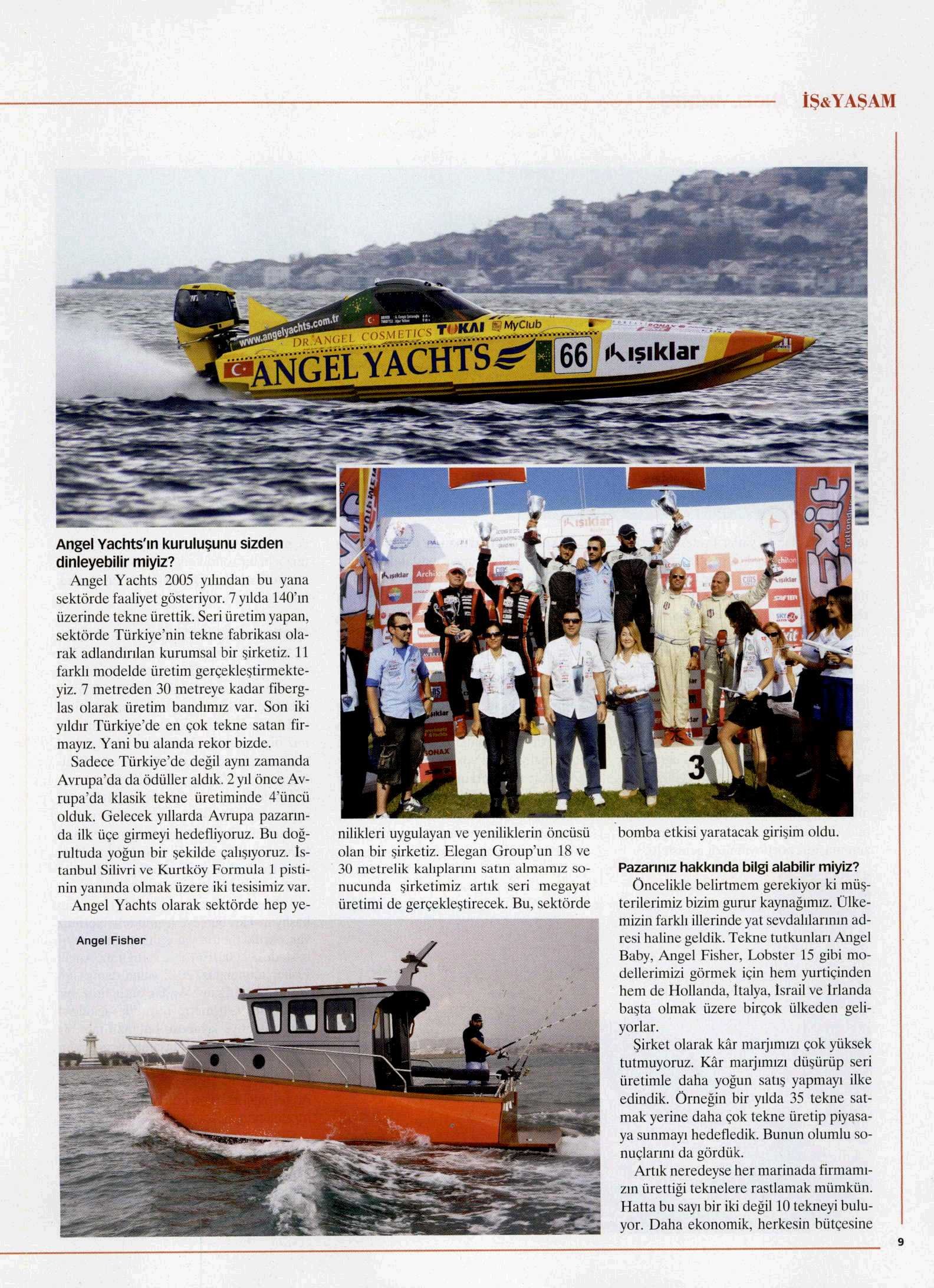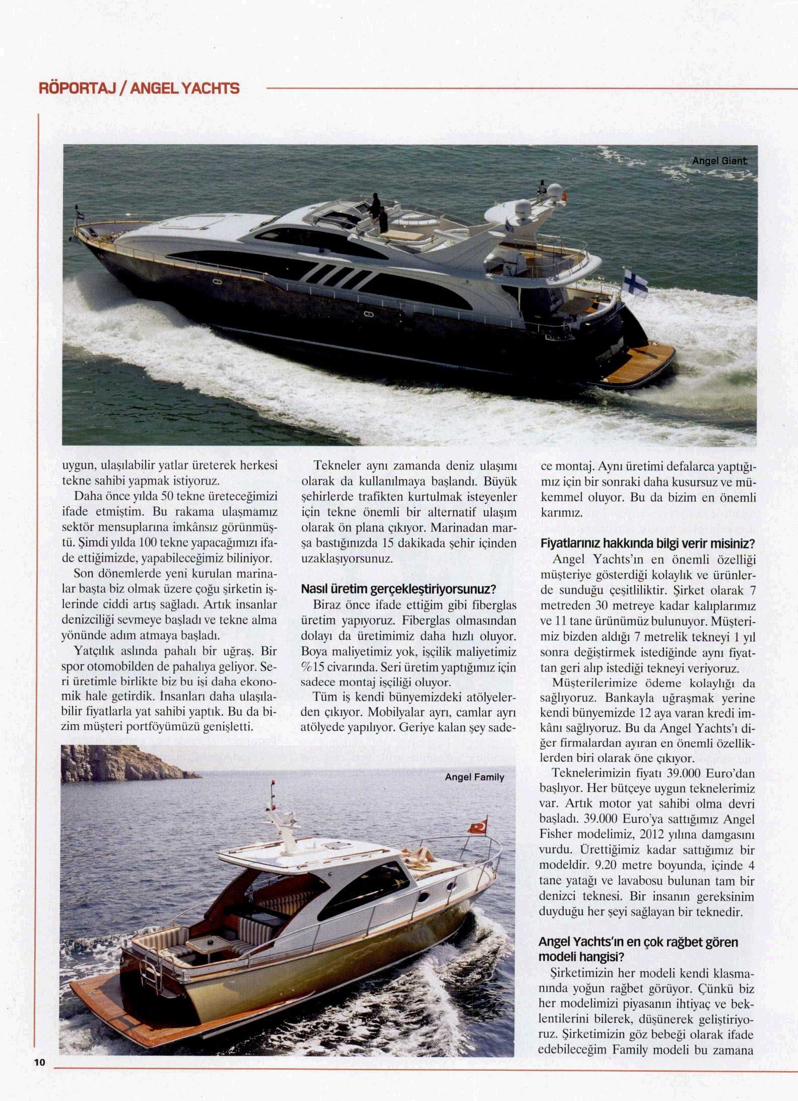 Amiral gemimiz Angel Yachts. Piyasada Türkiye’nin tekne fabrikası olarak adlandırılan bir firma. Satış adetleri bakımından Türkiye’de kendi sınıfının lideri konumunda. Zaten o nedenle, bazıları denize imza atar diyoruz.