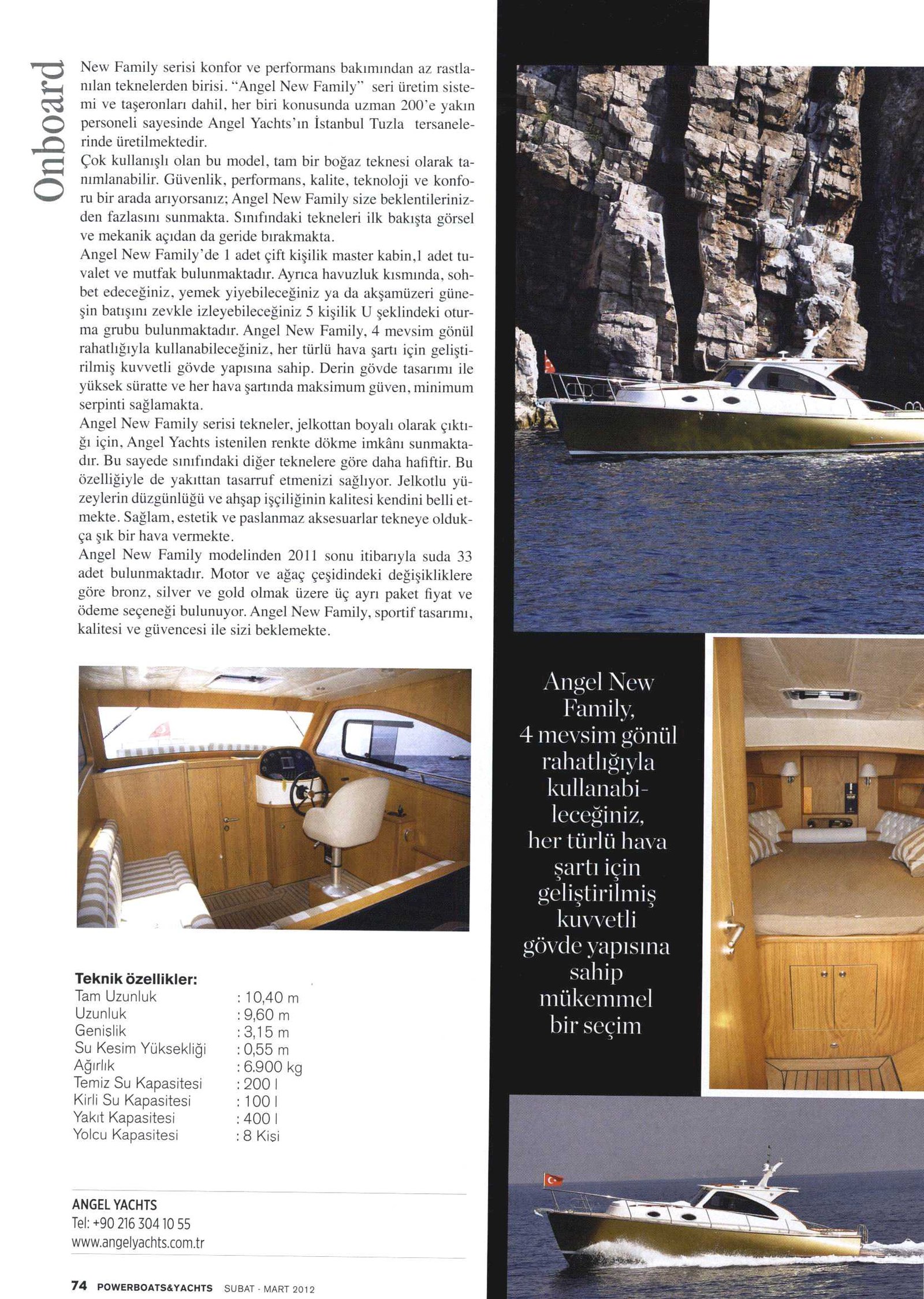 New Family serisi konfor ve performans bakımından az rastlanılan teknelerden birisi. ”Angel New Family seri üretim sistemleri ve taşeronları dahil, her biri konusunda uzman 200’e yakın personeli sayesinde Angel Yachts’ın İstanbul Tuzla tersanelerinde üretilmektedir.